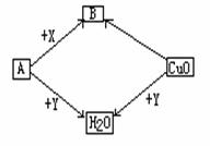 41.A、B、X、Y是初中化学常见的四种气体,它们之间有如图所示的转化关系。请写出:
