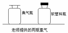 小帆看了报道,他猜测:(1)氯气一定有毒;(2)氯气还可能有的性质是:①氯气溶于水;②氯气与水反应。小帆和同学讨论后,对猜测(2)进行验证,老师提供了两瓶氯气(如下图),并提醒小帆:把蒸馏水加入软塑料瓶……,观察完现象后,再向瓶内滴加数滴石蕊溶液。