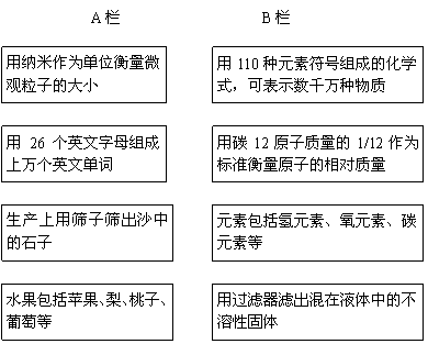 8.(8分)化学科学中许多原理与我们的生活、生产以及其他科学中的道理是一致的。请用短线将A栏与B栏相互关联的两项连接起来。