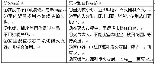 18.(7分)张华同学根据自己的住宅特点,设计了如下预防火灾的方案(包括万一发生火灾时采取的灭火和自救措施)。