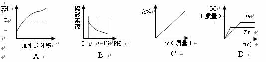 C.某温度下,向一定量的水中持续加入食盐并不断搅拌 (m表示加入食盐的质量,A%表示溶质质量分数)