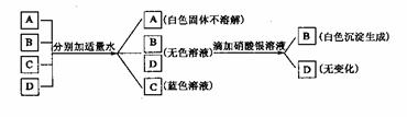 31.实验室有4 瓶失去标签的白色固体,它们是碳酸钙、硫酸铜、氯化钠、硝酸钾,为了给这4种物质重新贴上标签,某实验小组设计了如下方案并进行实验。![]()