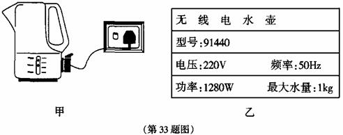33.(6分)如图甲所示为现在家庭、宾馆常用的无线电水壶(一种在倒水时导线脱离,用电加