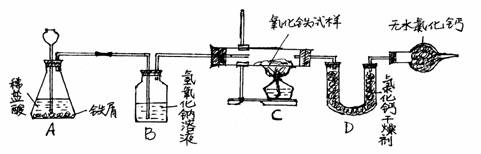 ⑵小峰同学通过称量反应前、后D部分的质量,来计算试样中氧化铁的质量分数,若按这一方案进行实验并记录数据,则计算出的结果和实际值相比将 (填“偏大”、“偏小”或“相同”)。
