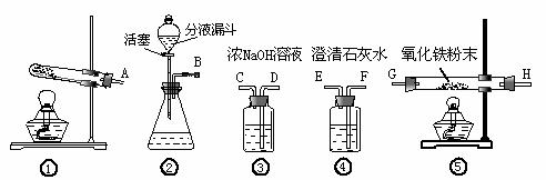 (1)用甲酸滴入浓硫酸的方法制取CO,应选 (填序号)装置;如果要除去CO中混有少量甲酸气体,最好选择上图中 (填序号)进行洗气。
