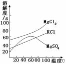 (3)晒盐后得到的母液(又称卤水)中含有氯化镁(MgCl2)、硫酸镁(MgSO4)和氯化钾(KCl) 等物质。参照右图各物质的溶解度曲线,从卤水中提取KCl晶体采用下列方法:①将卤水加热到60℃以上蒸发水分就会逐渐析出 (写名称)晶体;②将①中的晶体过滤后,得到滤液,将它降温到30℃以下,又析出晶体氯化镁和氯化钾,然后用少量的 _________(填热水、冷水)洗涤,就可以得到较纯的氯化钾晶体。