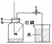 ①、检查整个装置的气密性后,将c处的止水夹夹紧,点燃红磷后,迅速插入左边的广口瓶中;