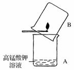 振荡烧杯A ,观察到高锰酸钾溶液褪色。小明认为是火柴燃烧生成的二氧化硫使高锰酸钾