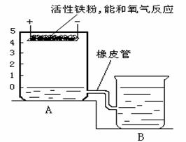 33.某学校兴趣小组用下列装置来测定空气中氧气的含量。(注:通电后装置内的铁粉能和空气中的氧气反应,A装置为密闭、透明容器,B容器中水足够多)