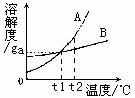 C.t1℃时,A、B两种物质的溶解度都为ag