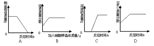 ④图D表示一定量的KClO3和MnO2混合物加热制O2,MnO2的质量分数与时间的关系