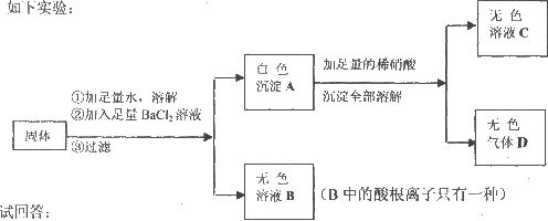 ①取少量固体溶于水,加入足量的Ba(N03)2溶液,充分反应后,过滤;