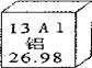 12.(3分)元素周期表是学习和研究化学的重要工具,它的内容十分丰富。我们可以从表中获得许多知识。右图表示元素周期表中铝元素,其原子核外的电子数为 。已知铝的化学价为+3,则其氧化物的化学式为 。该元素属于 (填序号)。