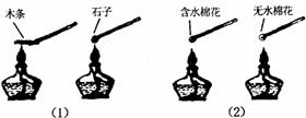 (1)用镊子分别夹取一根小木条和一块小石子,在酒精灯上尝试点燃。
