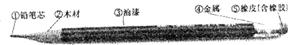 25、下图是同学们经常使用的铅笔,在组成铅笔的各种材料中: