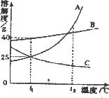 28.(3分)右图是A、B、C三种物质(不含结晶水)的溶解度曲线,请据图回答: