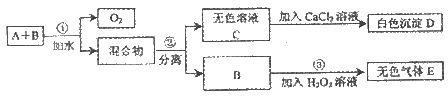 )和黑色固体B(不溶于水)与水混合反应制得氧气。某同学对A、B两种物质进行探究,实验步骤及现象如下图所示: