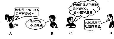 18.“NaCl+C02+NH3+H20=NaHC03↓+NH4Cl”是著名的“侯氏制碱法”的重要反应。下面是4位同学对该反应涉及的有关知识发表的部分见解。其中不正确的是 ( )