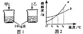 (2)图2中a、b分别表示上述两种物质的溶解度曲线,在_____℃时,这两种物质的溶解度相等;a表示的是____物质(填“甲”或“乙”)的溶解度曲线。