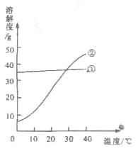 (1)右图是碳酸钠和氯化钠在不同温度下的溶解曲线,其中表示碳酸钠溶解度的曲线是(填序号)_________________