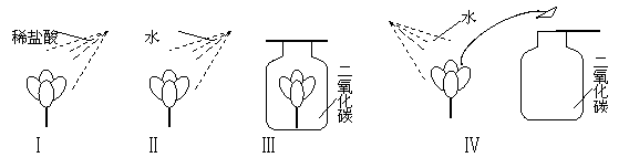 25、某同学设计了如下一组实验。取四朵用石蕊试液染成后又干燥的纸花,分别按下图进行实验。回答下列问题: