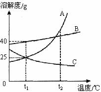 (2)t2℃时,将A、B、C三种物质的饱和溶液;
