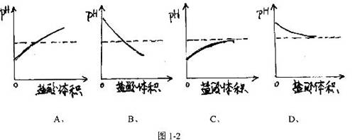 22、向烧碱溶液中不断滴加盐酸溶液,溶液的PH随所加稀盐酸体积的变化与图1-2相符的是