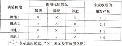 D.同时施用含有N 、P 、K 的化肥可获得最大的小麦产量