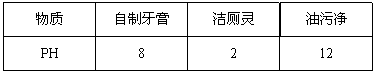 (2)小远测定自制牙膏及其他清洁用品的PH,记录如下: