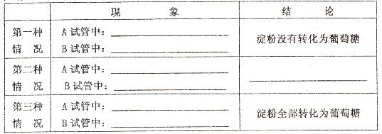 (1)由于各人控制的温度不同,出现了下列三种情况。请你根据已学知识,帮助他们完成下列实验情况汇总表。