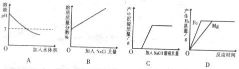 D.向两份同体积和相同质量分数的盐酸溶液中分别加入足量的铁糊和镁粉