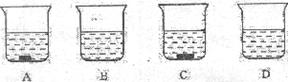 5.A、B、C、D四个烧杯分别盛有50g水,在相同的温度下,向四个烧杯中依次加入27g、9g、36g、18g的同种物质,充分溶解后的情况如下图所示。经观察后回答下列问题:
