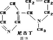 40、(3分)如图18为香烟中有害物质尼古丁的分子结构式,已知该物质每个分子中共含有26个原子,则该物质的化学式为________,其中含有_______种元素。该物质的相对分子质量为__________。