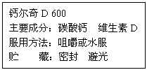 (3)“钙尔奇D”是一种常见补钙剂,右图是“钙尔奇D”说明书的一部分。思考后,请完成以下任务: