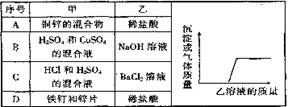 9.向下表中的甲物质中逐滴加入相应的乙溶液至过量。反应过程中生成气体或沉淀的质量与加入乙的质量关系能用表中右图表示的是