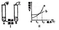 (2)右图Ⅱ中可表示甲物质的溶解度曲线的是 (填“a”或“b”)。在t2℃时,分别将相同质量的甲、乙的饱和溶液降温至t1℃,析出晶体较多的是 。