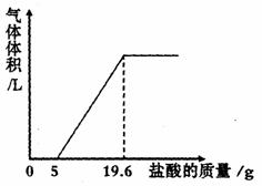③把反应后的物质转移到烧杯中,静置后,逐滴加入5%的稀盐酸,产生气体体积与加入盐酸质量的关系如下图所示。