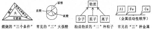 14、在化学学习中,我们能够总结出许多“三”。以下关于“三”的图形表述有错误的是