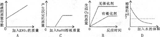 A.某温度下,向一定量接近饱和的硝酸钾溶液中不断加入硝酸钾晶体