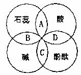 26.小李在学习酸碱指示剂与常见酸、碱溶液作用时,归纳成如图所示的关系。图中A、B、C、D是两圆相交的部分,分别表示指示剂与酸、碱溶液作用时所显示出的颜色,则其中表示不正确的是( )