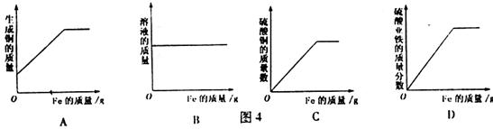 14、将足量的细铁丝放人一定量的硫酸铜溶液中,则图4中表示正确的是