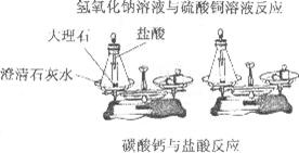 27、在学习质量守恒定律的活动探究中,分别采用了硫酸铜溶液与氢氧化钠溶液(氢氧化钠与澄清石灰水的化学性质很相似)、大理石与稀盐酸溶液进行化学反应。分别看到了蓝色沉淀利生成大量气体。请回答下列问题: