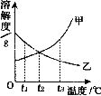 A.t1℃时,甲的溶解度大于乙的溶解度