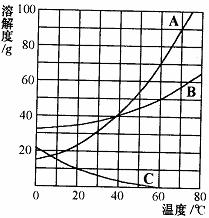 (3)将40℃时的A、B、C三种物质的饱和溶液降温至10℃时,无晶体析出的是 。