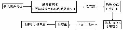 (1)通过澄清石灰水时,无沉淀但气体体积明显减少,说明原混合气体中一定含有 。