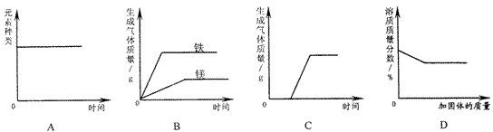 B.等质量的铁和镁同时分别放入两份溶质质量分数相同的足量稀盐酸中