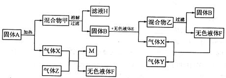 (2)如果气体Z是最简单的有机物,它在气体X中燃烧,会因X的量的不同而生成不同的物质。试写出X和Z反应生成固体单质M和无色液体F的化学方程式: 。