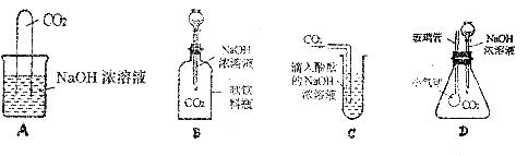 (1)按以上四种实验装置分别进行实验,能证明CO2和NaOH发生了化学反应的装置是(填写字母标号) 。在实验中你观察到的实验现象是: 。