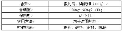 (1)由食用方法和贮藏指南可推测腆酸钾(KIO3)的化学性质之一是: