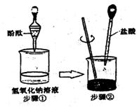 (1)用胶头滴管吸取盐酸逐滴加入烧杯中,当溶液刚好由_________色变成_________色时,停止加入盐酸,该反应的化学方程式为___________________________。